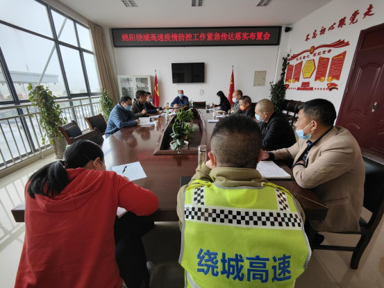 4月5日上午,綿陽高開司副總經(jīng)理岳東召集繞城高速公路管理所、中石化、服務(wù)區(qū)相關(guān)責任人,緊急傳達落實4月4日省、廳及市疫情防控工作專題會議精神,安排部署綿陽繞城高速疫情防控工作。